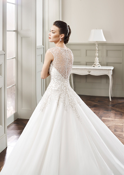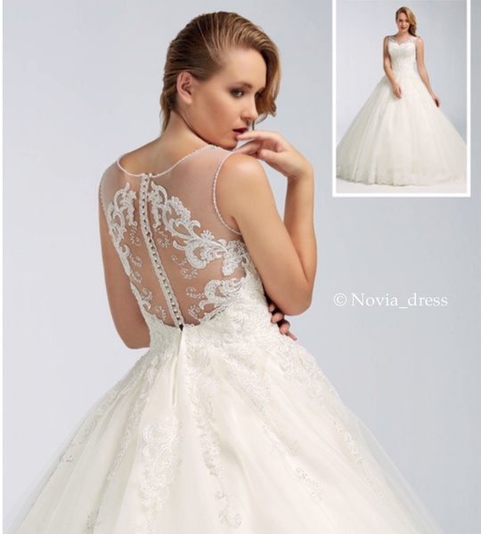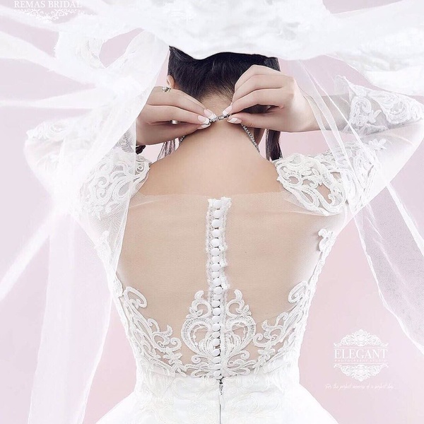 فستان الزفاف الذي حلمت به في صغرك تحول إلى حقيقة, فستان من الدانتيل مع نقشة مميزة على الظهر تلفت الأنظار.