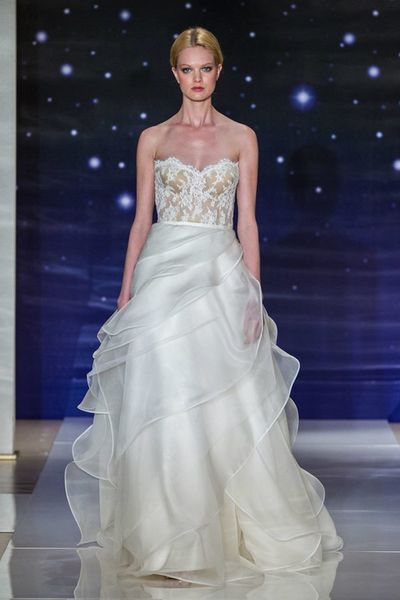 احتوت مجموعة فساتين زفاف ريم عكرا على التصاميم المحددة لجسد المرأة كقصة ذيل السمكة، ولكنها لم تخلو أيضا من الموديلات المنفوشة. قدمت ريم عكرا باقة متنوعة من الفساتين منها ما هو بأكمام طويلة وبنصف كم وأخرى بدون حمالات لتناسب أذواق كل النساء الذين يبحثون عن التميز دائما. كما استخدمت ريم عكرا في تصاميم الفساتين أقمشة الحرير والكريب والدانتيل ومزجت بينهم بطرق فنية متنوعة ترسم جسد العروس بنعومة وأناقة.